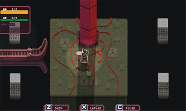从一个方格跳到另一个方格,如果你有剑,就对周围的敌人造成眩晕效果,如果你没有剑,就只能推他们。