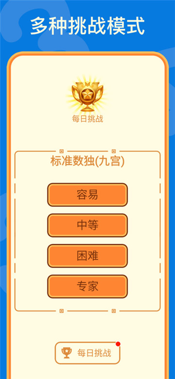 数独是一款益智类游戏,区别去其他的数独游戏,本应用包含4个等级,每个等级包含1000关,足够让那些脑力爱好者畅快的挑战一番了。还等什么,herewogo。
