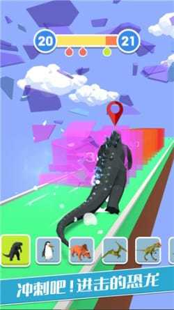 1. 你能够挑选不同种类的恐龙去挑战关卡,要留意跑道的变动,跨越障碍物与陷阱。