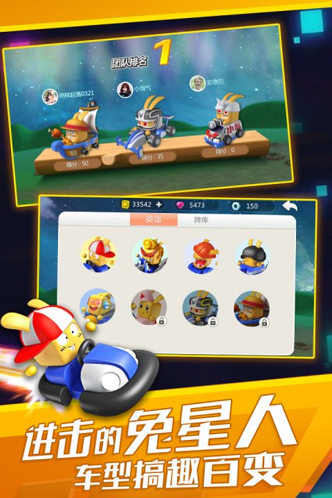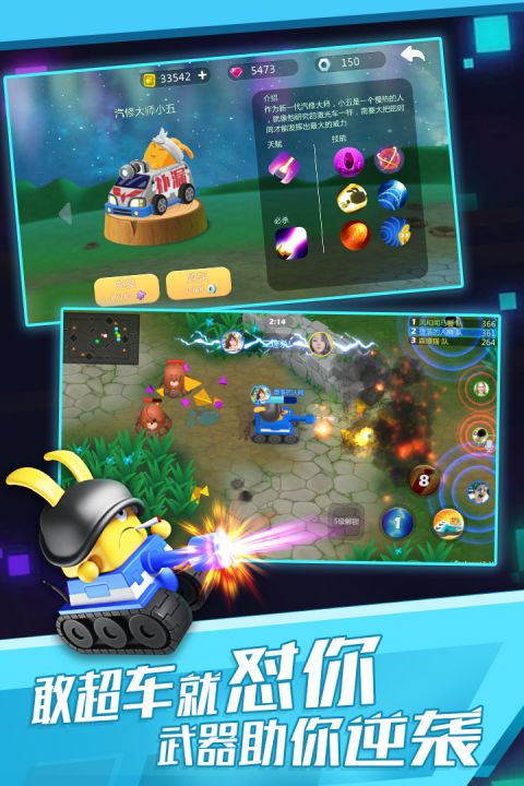 1、进击的兔星人来啦!这里的车型搞趣百变,有头戴坦克钢盔,拥有“无敌时刻”的坦克钢盔兔;有具备“范围医疗”能力的急救车兔;还有装备“机枪尾雷”的战车迷彩兔。不仅如此,就连共享单车在它们手中,都能变身怒怼变形金刚。快来挑选你喜爱的兔星人,一起制霸游乐场吧!
