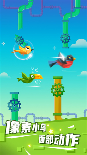 1、快来体验对像素小鸟的魔性操控!参与面容动作大比拼,用你的表情掌控小鸟飞行,开启像素鸟的冒险闯关之旅。