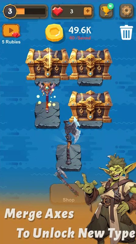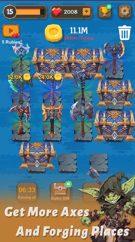 1. 持续合成斧子,增添更多空位,丰富斧子种类,以此提升自身实力。