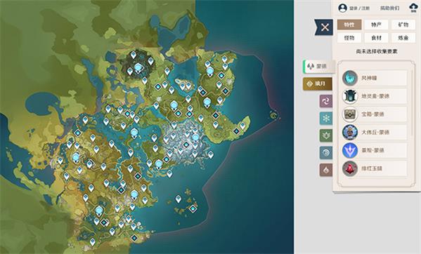 2、元神拳收藏互动地图工具,可以帮助玩家快速点点资源。