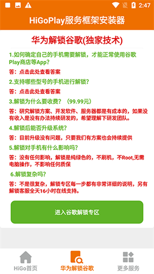 HiGoPlay谷歌安装器最新版会根据用户的设备厂商、系统版本、CPU框架等数据,自动进行本地检测,为用户匹配最合适的修复升级方案。