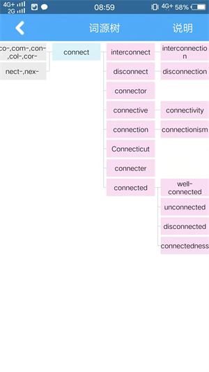 6、词根词缀相当于汉字的偏旁部首,记住常用的词根词缀,可以让你的词汇量快速达到考研、托福、雅思、GRE的水平。APP目前总结两千多条词根,拆解了十万多条包含词根的单词;