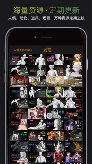 无限量定期更新绘画资源素材,包括三维可动人偶、静态虚拟手办、动作、动画、手势、材质、发型主题包、道具主题包、场景主题包等。