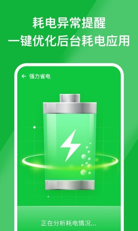 【强效省电】电量消耗异常即时提醒,轻点一下即可优化后台耗电程序。