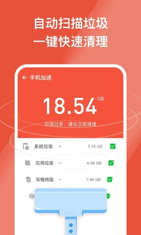 【一键告别卡顿】只需一键加速,系统自动清理垃圾,让手机运行如飞。