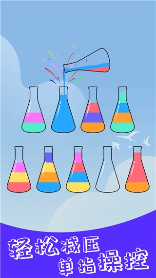 玩家需要将所有的液体按照关卡要求排列好即算通关,通关可以获得大量金币奖励