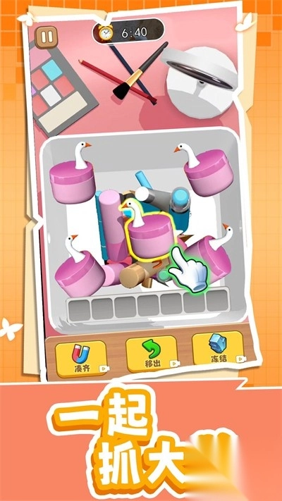 一起抓大鹅免费版,带来轻松欢乐的消除挑战。玩家要凭借巧妙匹配,迅速抓住调皮的大鹅,还能解锁各类实用道具,提高消除效率。丰富多元的关卡设计,考验玩家的策略思维,每次闯关都有机会创造新纪录。其清新可爱的画风,搭配上魔性音效,玩法简单易上手,适合各个年龄段的玩家体验。