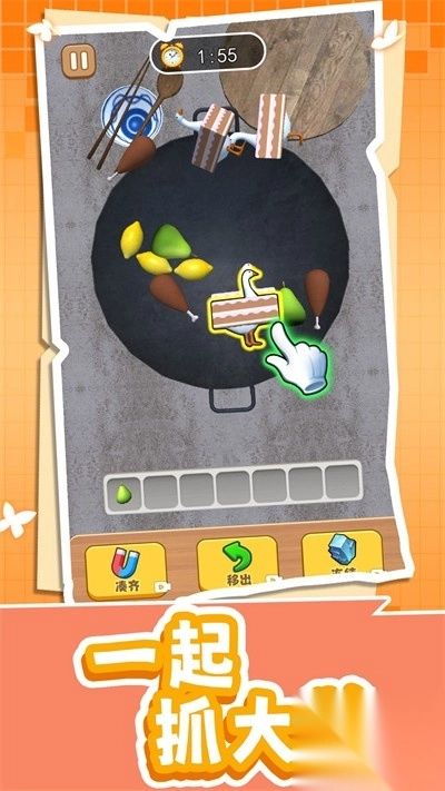 2、创新性地引入物理互动机制,玩家能够自由拖拽场景里的物品,甚至能借助“颠锅”操作打乱物品排列顺序,为传统三消玩法增添策略深度。