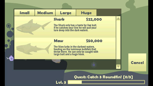 4、获取到一定数量后,你便能在商店选购渔具,如此一来,你的鱼钩能够抛至更远之处,钓到更多的鱼。