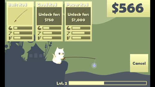 在小猫钓鱼游戏下载的有船版里,钓鱼工具包含鱼竿、渔网、渔船、网兜等。玩家需要多钓到鱼并卖掉以获取金币,然后前往游戏商城购置更高等级的渔具,从而钓到更多的鱼。