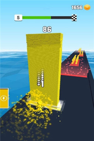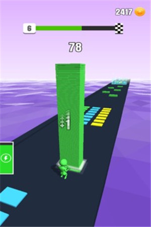 3、方块堆叠得越高,关卡完成度便会随之提升,如此一来,你很快就能抵达每个关卡的终点。