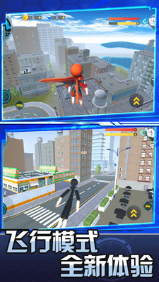 1、火柴人开放城市钢铁丛林场景真实还原,支持360度无死角飞行体验。