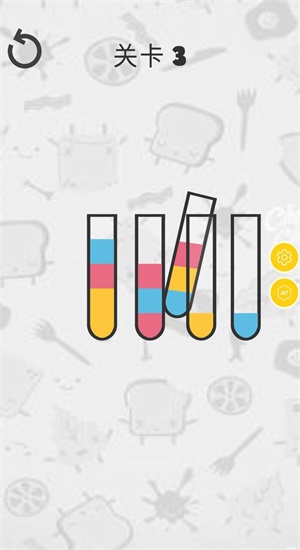 3. 只需把相同颜色的液体倒入同一个杯子,就能完成游戏任务。该游戏玩法丰富多样,规则也相对较少。