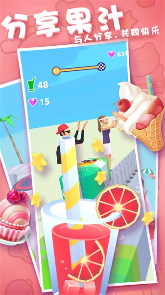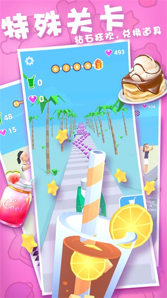 1. 这款游戏操作颇为简单,只需滑动屏幕,就能操控果汁杯向前移动,或是向左、向右躲避。