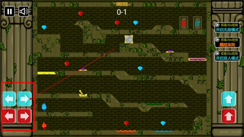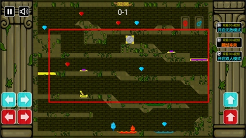 1. 冰人和火人能够接触与自身颜色不同的液体,需借助这一特性操控角色,使其在液体里顺利穿行。