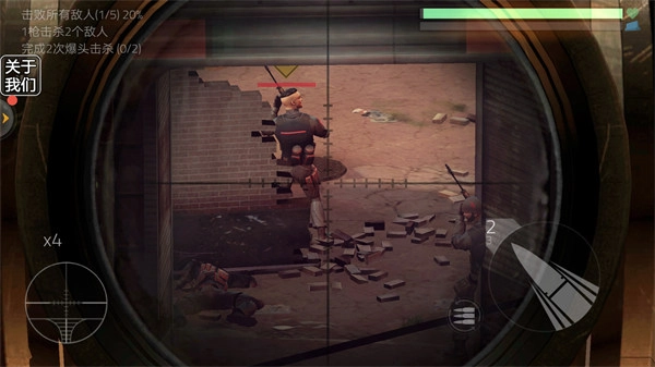 在这款游戏中,玩家可以依靠自身实力逐步解锁海量任务关卡并发起挑战,这对玩家的射击技巧与反应能力是不小的考验。每个关卡的敌人数量各异,玩家需要逐个找出并全部消灭,随时都能开启一场紧张刺激的射击体验。随着玩家等级的提升,游戏难度也会逐步增加,让玩家能体验到更多高难度关卡带来的挑战。