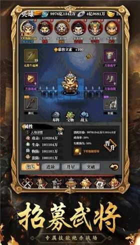 完美的副本评估需要有条件解锁,拖地功能可以帮助你轻松地刷材料,所以你不需要手动获得收入。三国RPG游戏,进入混乱的三国,一定要合理安排武将,这样可以让玩家以少胜多。战略竞技玩法,不需要精湛的操控技巧,考验玩家的战略部署能力。
