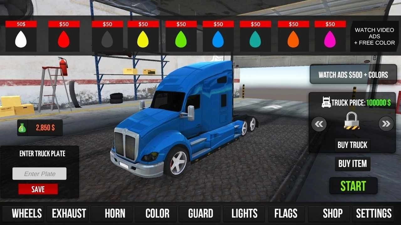 2、通过赚钱来购置全新的卡车与拖车,自行挑选合适的工作,然后在开阔的世界里完成货物交付!