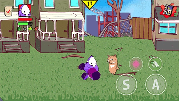 2、游戏界面左侧用于控制角色移动,右侧的A键对应轻拳,S键对应重拳,带有鞋子图案的按键则是疾跑功能。