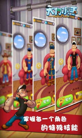 3.大力水手在跑酷时会及时排查各类隐患,保障安全。借助道具的助力,他要在奔跑途中收集各式各样的黄金奖励。