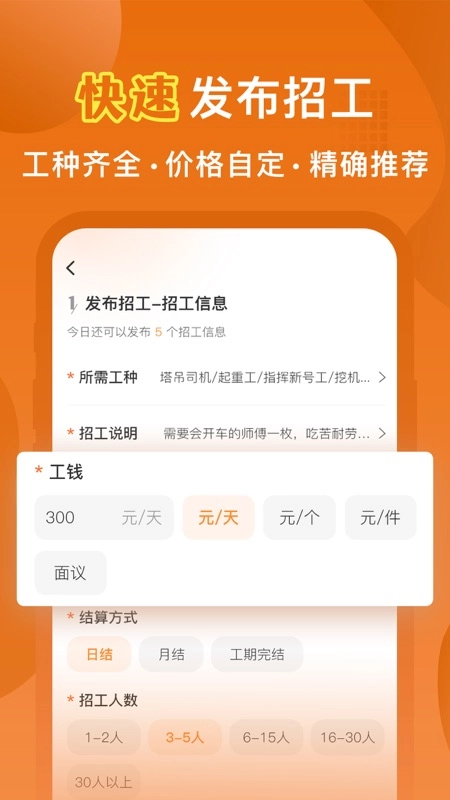 完善所需工种、招工人数、工作工期等信息发布招工内容;