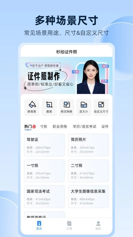 提供的证件照尺寸非常的丰富,在这里你可以获取各种类型的证件照尺寸;