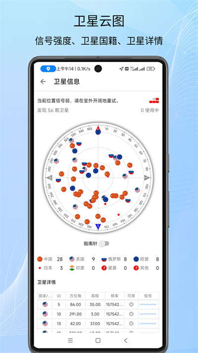 4、对GPS信号信息展开检测处理,迅速获取卫星相关信息,包括查看卫星数量、实时位置以及卫星是否可用。