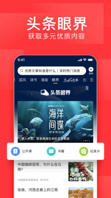 今日头条作为一款专业的新闻资讯软件,不仅为你准备了丰富的新闻资讯,还有千万级高清视频可供播放。这里的内容新鲜,能快速呈现给你。它还支持定制专属信息,让你随时随地在线浏览,极为省流量。而且只需一键就能转发给好友,让更多人与你一同观看。