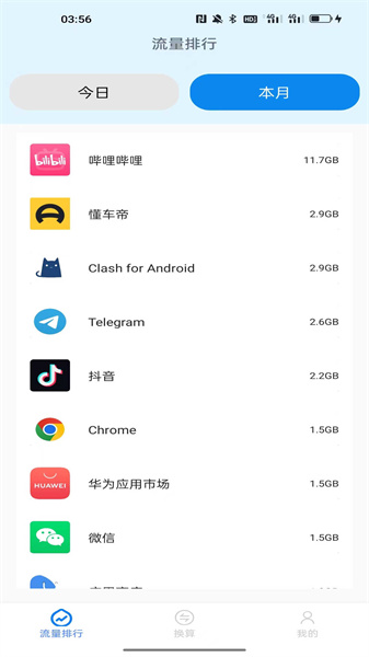 2、用户能够查看流量使用排行,从而清晰知晓各个应用程序的流量消耗状况,助力用户合理管理流量。