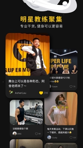-明星教练生活中的另一面、热门课程讨论、专业的教练指导,你想看的这里都有!同时教练还会在圈子内发布训练课程并对你进行专业、贴心的运动指导。