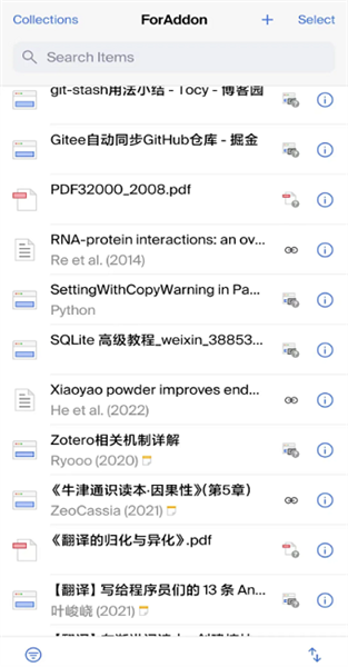 1、打开后能够创建文献库内的全部文献,文献以标题形式呈现,若包含附件则会有PDF标志。