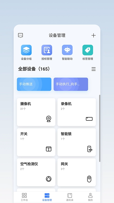 软件功能十分强大,用户可以通过设备分组、角色标签等方式,实现多层级的设备权限控制,同时提供了AI算法、云直播、音视频互动、设备消息推送等平台定制服务,高效率低成本打造专属智居服务平台,快速实现业务闭环,引导行业健康发展,进而为用户提供安全、健康、舒适的居住空间和高效的工作环境。