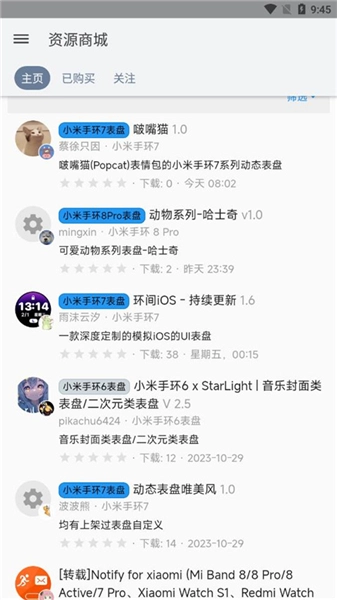 1. 资源商城为用户提供丰富的智能手环应用程序以及表盘资源等,充分满足用户多样化的需求。