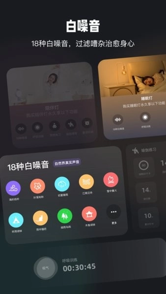 3、沉浸式睡眠体验:搭配自然白噪音,无论是日落伴睡还是定时开关,家超睡眠灯伴您度过每一个美好的夜晚。
