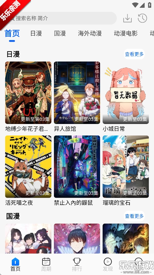 1.打开动漫屋,可以看到首页上方主要有日漫、国漫、经典番剧、动漫电影等等板块内容。