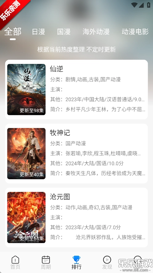 3. 点击排行后,能看到各板块依据当下热度整理出的排行榜单。