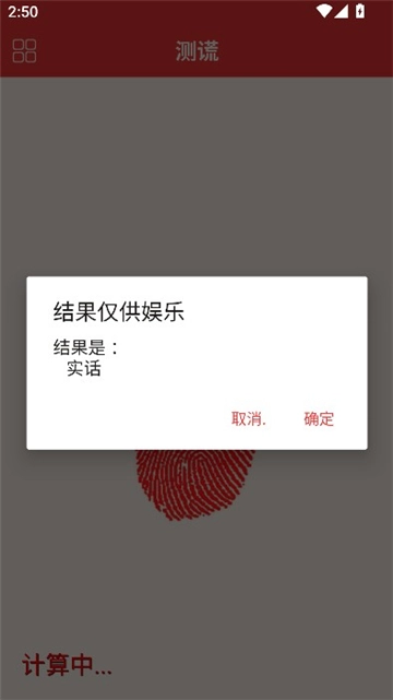 这是一款纯粹用于娱乐的应用程序,旨在为您的生活增添些许乐趣,让您能与朋友们轻松打趣。此应用具备指纹测试、语言测试以及人脸识别这三种模式,而且您还能够手动设定判断真假话的先后顺序。