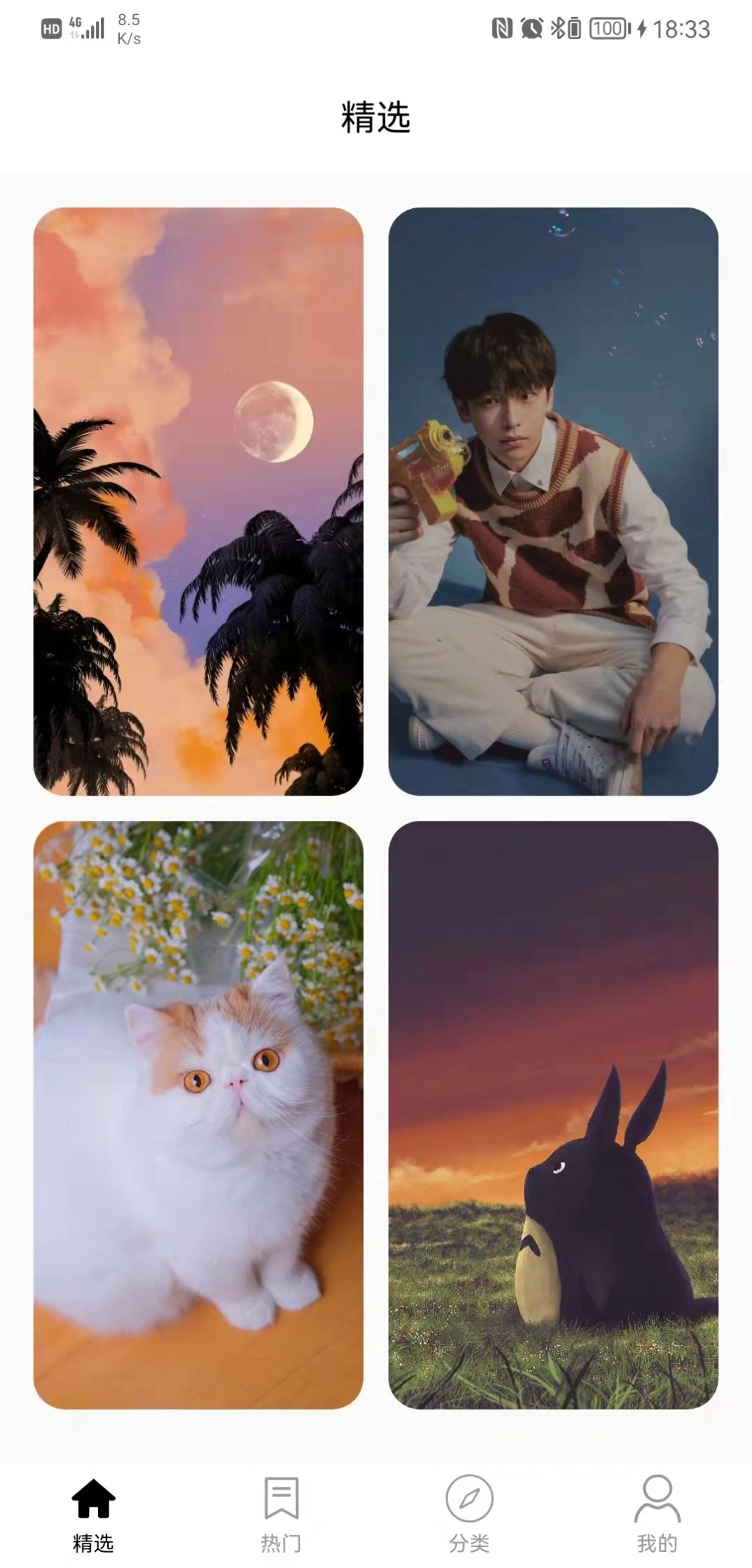 1、界面设计极为简洁,使用户一眼便可找到自己所需内容。与此同时,还支持用户对壁纸进行自定义设置,让用户在欣赏美图的过程中,能够充分展现个性化。