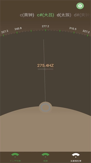 2、开启软件后,拨响需要调校的琴弦,留意调音器上的显示,依据显示的高低状况来调节琴弦的松紧程度,直至显示准确。