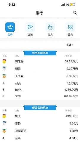 1、在该软件里能够查看部分商品的排名情况,这能为你店铺的销售工作提供极具价值的参考。