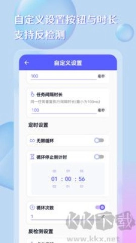 在自动点击操作期间,点击方块形状的按钮便能暂停点击。与此同时,用户能够依据自身需求,对方块按钮的持续时长、间隔时间等参数加以设置。