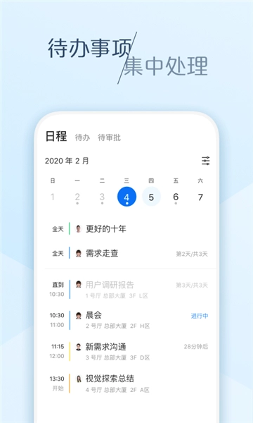 4、不仅如此,还能够查看待办事项,针对工作日程、待办工作以及待审批工作,借助线上途径快速实现集中处理。