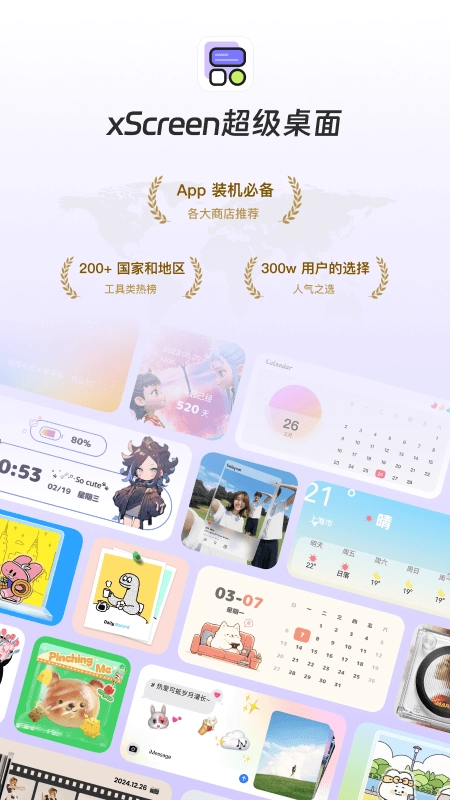 拥有600+小组件自由组合选择,特别灵动岛功能,如养宠物、个性签名及快捷启动等。同时,它还包括锁屏天气、电量显示、X面板等多样锁屏组件,以及打工人时钟、todo清单、日历等实用小组件。配合200+专业设计师打造的500+精美主题和高清壁纸,用户可以轻松定制个性化手机桌面。此外,全新适配的锁屏组件带来更多创新体验,让手机桌面美观又实用。