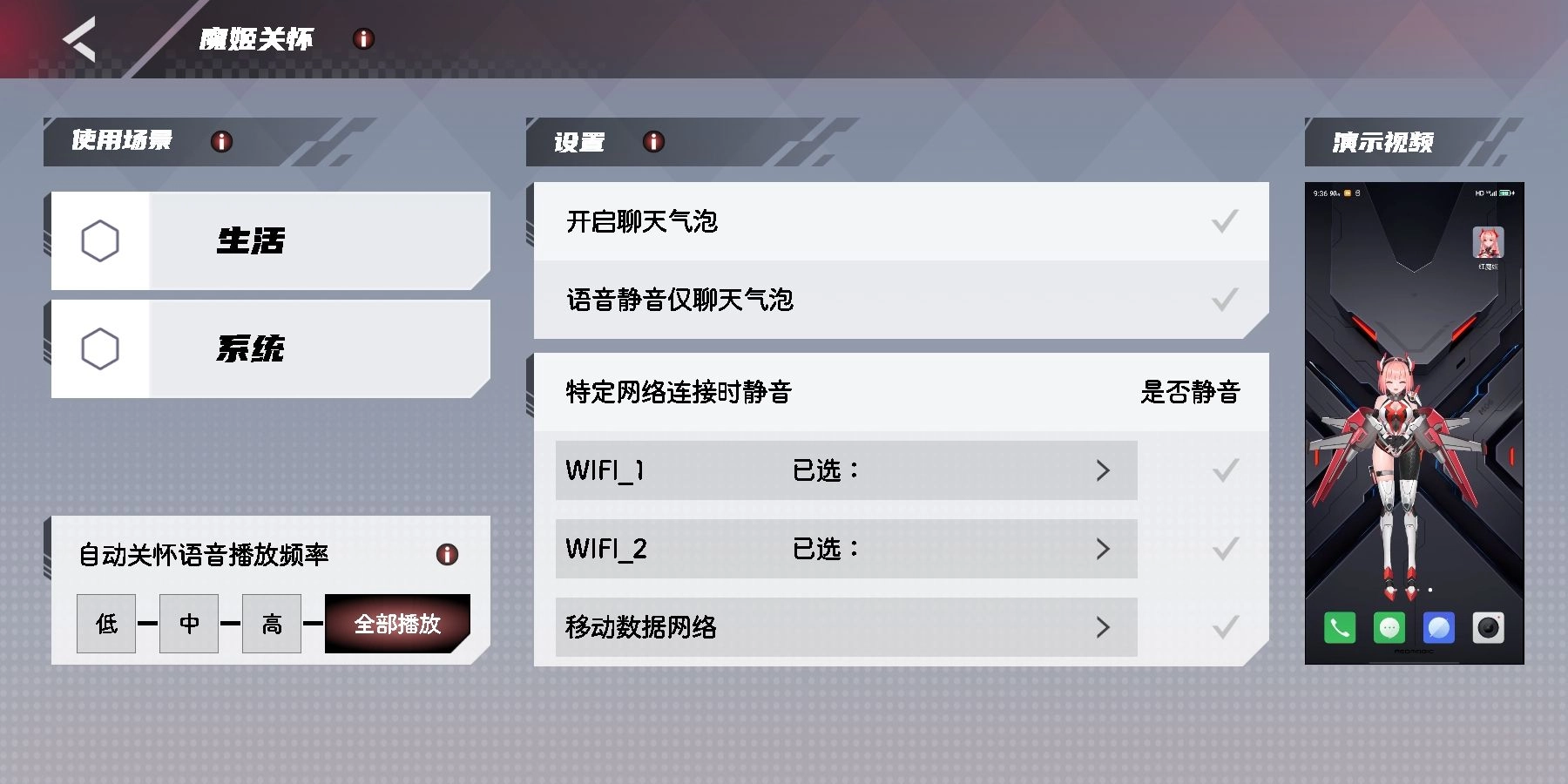 3、魔法少女贴心关怀:红魔姬具备智能场景识别能力,能针对你的手机使用情况以及生活状态,以语音形式给出提醒。此次还新增了“反社会死亡”功能,让你能够按照自己的心意随意设置语音提醒内容,摇身一变成为你全天候的心声助力与贴心加热助手。