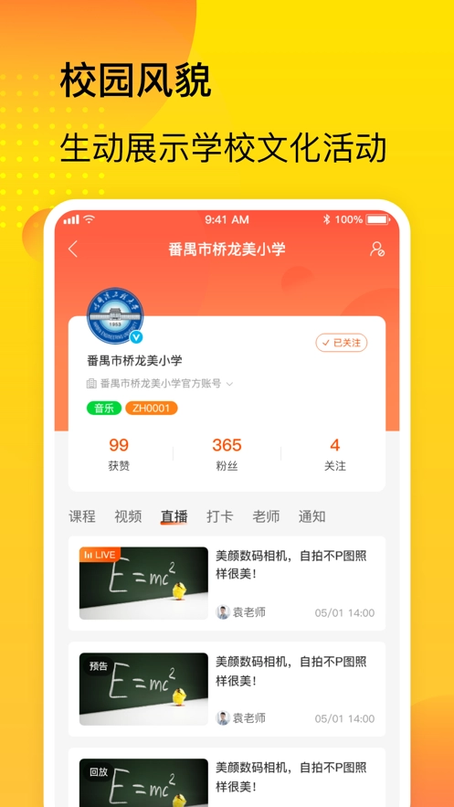 满足校园内视频通知发布、视频作业布置与提交、课程直播开展以及活动直播进行等多方面需求。