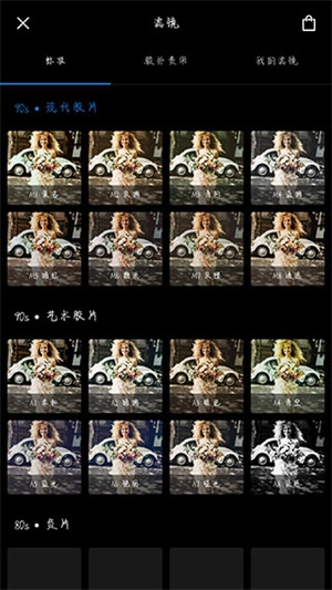 最中间是你导入的要编辑的照片,左边框提供了滤镜预览(现代、胶片、艺术、自定义),每组滤镜下面有多个分滤镜可供选择,如果对软件内所封装的滤镜不是特别满意,那么右边框的参数选项可以让你对当前滤镜再做调整。若你想创建自定义滤镜,则需要花 30RMB 解锁内购。