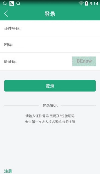 5、在网上报名系统中输入证件号码、密码及验证码后完成登录操作;